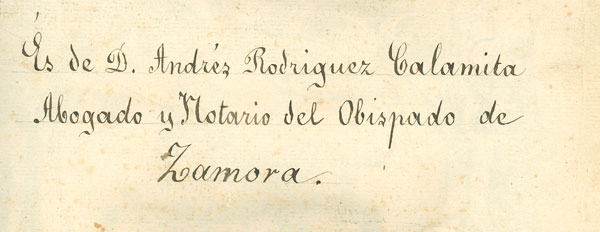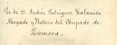 Ex libris ms.: "Es de D. Andrés Rodriguez Calamita Abogado y Notario del Obispado de Zamora".