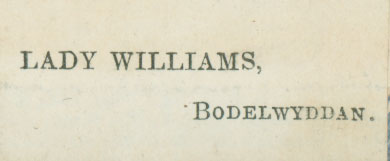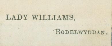 Ex libris de Bodelwyddan, Sarah Williams, baroness of (1801-1876)