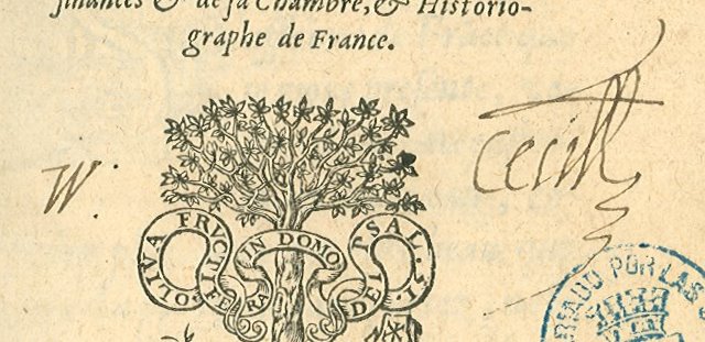 Exlibris manuscrito de Burghley, William Cecil, Baron (1521-1598)
