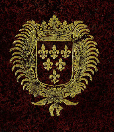 De oro, sembrado de lises de azur, tres en jefe, dos al centro y una en punta; al timbre, corona ducal, palmas de triunfo a diestra y siniestra y Tosión pendiente.