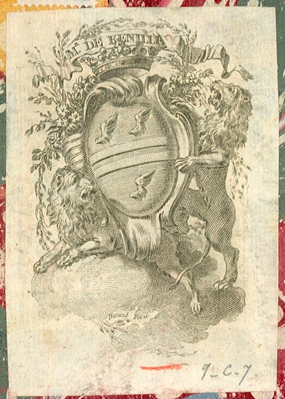 Ex libris manuscrito de Crozat, Joseph Antoine, Marquis de Thugny (1699-1750)