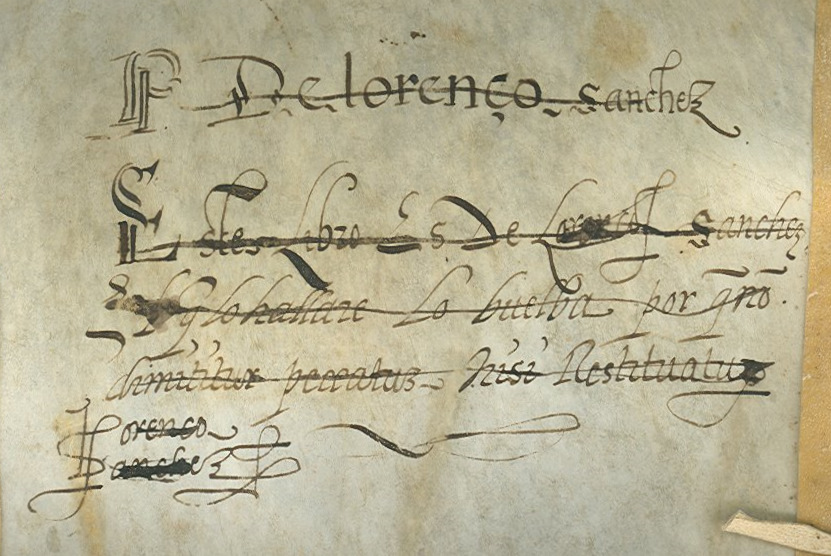 Exlibris manuscrito de Sánchez, Lorenzo (s. XVI)