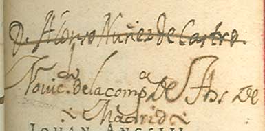 Exlibris ms.: "D. Alonso Nuñez de Castro, noviciado de la Compañía de IHS de Madrid"