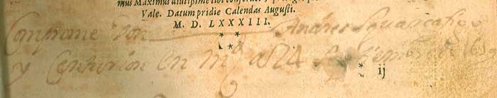 Exlibris ms.: "Comprome Don Andres Squarçafigo y Centurion en M? a 24 Septiembre de 1659"