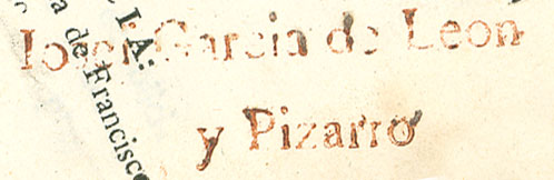 Sello de tinta: "Iosef Garcia de Leon y Pizarro".