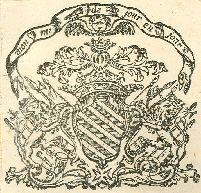 Datos biográficos:Abad de Bourgueil en Anjou, después Obispo de Chartres de 1620 a 1641 y finalmente Arzobispo de Reims de 1642 a 1651. Era hermano de consejeros de Estado y mariscales de Francia. Hombre de Richelieu, reunió importante biblioteca y tuvo diversos superlibros según iba ascendiendo en la jerarquía eclesiástica. Tras morir, fue vendida la biblioteca, en 1653. Escribió un poema latino a la Virgen, rituales de liturgia y otras textos religiosos.Bibliografía:Guigard, Joannis, Nouvel armorial du bibliphile. Paris, Emile rondeau, 1890, v. I, pp. 274-275.