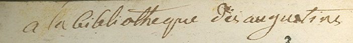 Ex libris manuscrito del Convento de los Agustinos de Saint Benoist. Biblioteca