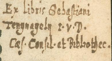 Ex libris ms.: "Sebastiani Tengnageln I.V.D. caes. Consil. et Bibliothec."