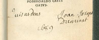 Exlibris manuscrito de Mirat, Joan Joseph du (s. XVII)