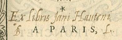 Exlibris manuscrito de Hout, Jan van (1542-1609)