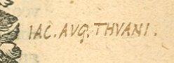 Datos biográficos:Tercero de los hijos de Jacques Auguste de Thou (1553-1617), célebre historiador. Era barón de Meslay y heredó la rica biblioteca en 1643, tras ser decapitado en Lyon su hermano François-Auguste. Aumentó la colección con la biblioteca de su suegro Hugues Picardet. En 1660 era Barón de Meslay. En 1677, al morir, pasó la biblioteca al abad de Samer, llamado asimismo Jacques-Auguste de Thou, aunque en 1680 vendió la muy amplia biblioteca a Charron de Ménars.Bibliografía:Guigard, Ioannis, Armorial du Bibliophile. (París, 1870-1873), vol. II, pp. 220-221; Henry Harrisse, Le Président de Thou et ses descendants, leur célébre bibliothèque, leurs armoires et la traduction française de J. A. Thuani Historiarum sui Temporis.(Paris, 1905).