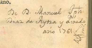 Exlibris manuscrito de Díaz de Ayora y Pinedo, Manuel José (s. XVIII)