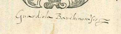 Exlibris manuscrito de Guardiola, Juan Benito (O.S.B.)(1530-1600)