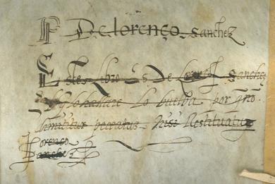Exlibris ms. en v de plano post. tachado: "De lorenço sanchez. Este libro es de Lorenço sanchez el q[ue] lo hallare lo vuelva por q[ue] no[n] dimititur peccatus nisi restituatus. Lorenço sanchez [ut vid.]"