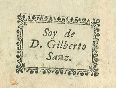 Exlibris: “"Soy de D. Gilberto Sanz”"