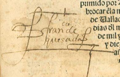 Exlibris manuscrito de Quesada, Francisco de (s. XVI)