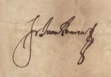 Exlibris manuscrito de Abarca, Juan (O.Jer.)(s. XVII)