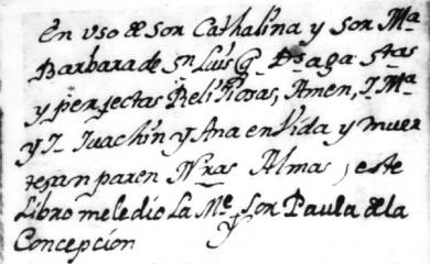 Exlibris manuscrito de Paula de la Concepción (ca. 1700-1779)