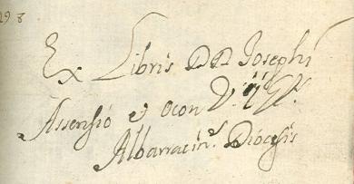 Ex libris manuscrito de Asensio y Ocón, José (ss. XVII-XVIII)