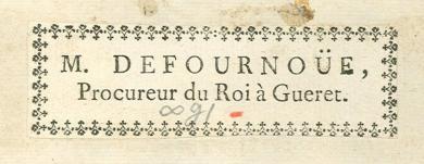 Ex libris en papel de Couturier de Foürnoue, Antoine-Olivier-François (17--/1817)