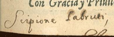 Exlibris manuscrito de Labruti, Scipione (s. XVIII)