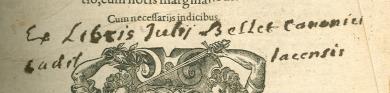 Exlibris manuscrito de Bellet, Julio (s. XVII)